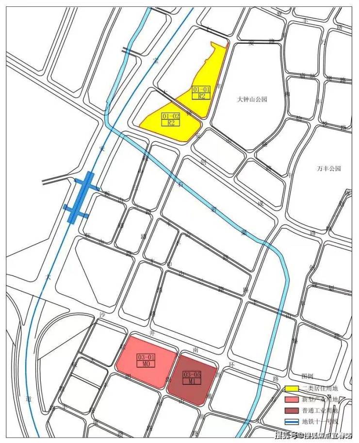 其中北边的01-01、01-02两宗为二类居住用地,即"檀府"项目的两个地块。