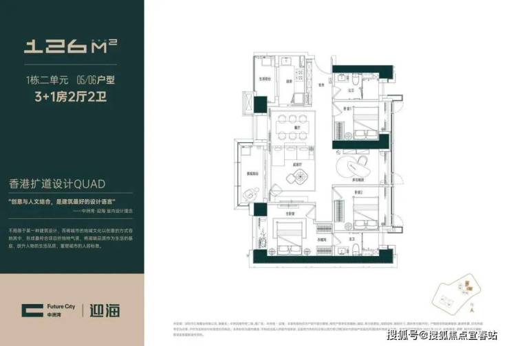 一线品牌精装交付、126/260㎡3-4房主力户型,板楼设计,2梯2户/5梯6户舒适梯户比