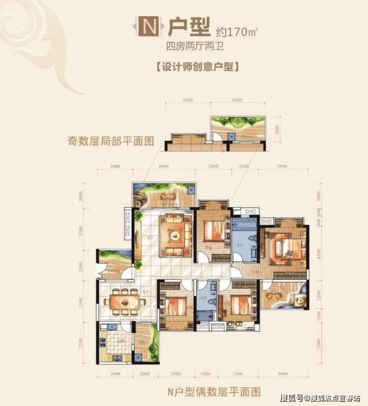 170㎡ 四房两厅两卫1200- 1300万起 双证