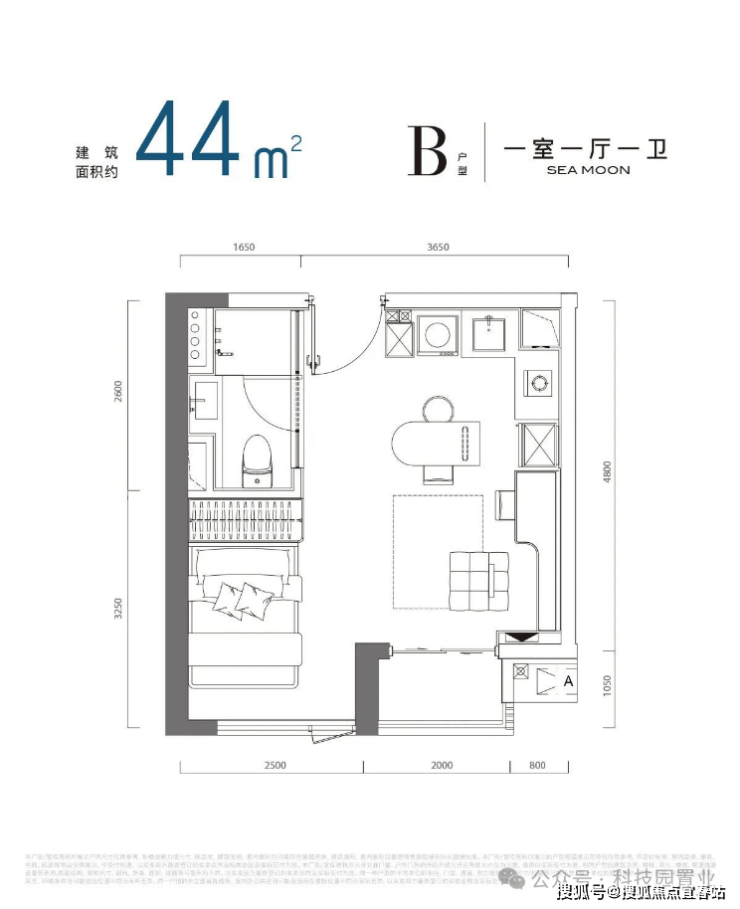 招商望海玥此次推出的公寓产品为36-44-46㎡的1房和60㎡的2房,梯户比为3梯13户,基本18楼以上南面的户型可以享受无遮挡海景