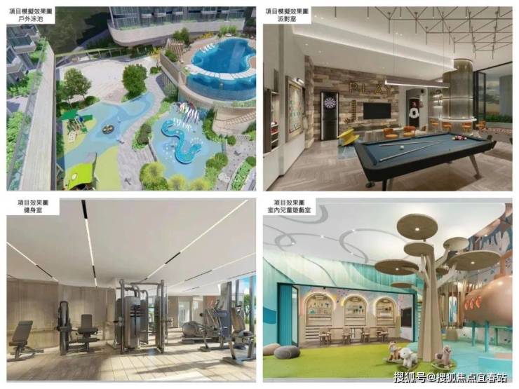 会所设施:项目设有园林会所,面积近10万尺,提供宴会厅、儿童游戏室、桌球室、健身室、游泳池等多元设施,供住户使用。
