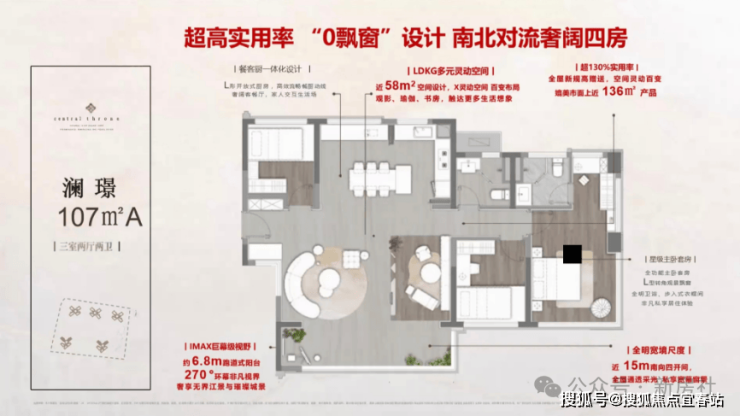 【107㎡】14.5米南向面宽+6.8米超大阳台对流+首创独立阳光女神衣厅+改善首选 约6.8米超大阳台,4.2米超大客厅开间,近38㎡LDK设计,首创独立阳光女神衣厅,新潮实用,约6.8米 270°环幕观景窗,舒居大四房改善必选!