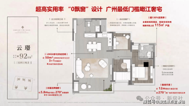 【95㎡】11.8米南向面宽+5.8米超大阳台对流+极致珠江景观+灵动改造三四房随意切换+首置首选 约5.8米超大阳台,5.8米超大客厅开间,近39㎡LDK谁,灵动布局,新潮实用,约5.4米270°环幕观景窗!