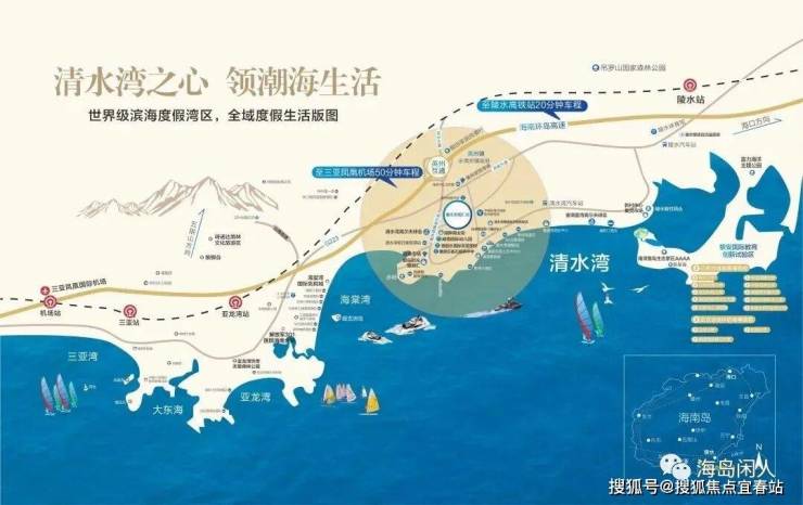项目地处北纬18°以南,距三亚市区直线距离约45公里,尊踞大三亚醇熟生活圈;位于清水湾度假区中央核心,坐拥清水湾万亩文旅醇熟配套,紧邻陵水黎安国际教育创新试验区,致力于打造清水湾片区产品标杆。