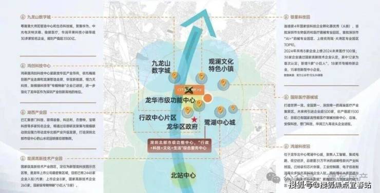 观澜占据龙华70%产业,鹭湖中心城与九龙山数字城双核驱动,聚焦人工智能、生物医疗等高新技术产业;