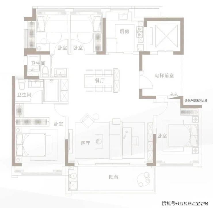 面积:79-85㎡3房1卫,91-95㎡3房 2卫,125㎡4房2卫