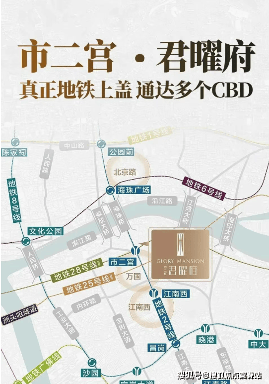 君曜府交通十分便捷,位于2/28号线(广佛段在建中)交汇点市二宫站上盖。2号线畅连北京路、万国、江南西等多个商圈,能快速通达珠江新城、琶洲等CBD,满足居民日常出行、购物与工作需求。未来28号线(佛穗莞城际)开通后,从市二宫站出发,3站到琶洲,可快速通达广佛莞三市中心城区。此外,海珠主干道江南大道、内环路、滨江路在项目周边,家门口市二宫公交站有超20条日夜班线路,自驾通过江南大道北,经海珠桥/解放桥可直达越秀区。便捷的交通网络为居民提供了高效的出行体验,无论是日常通勤还是休闲出行都极为便利。售楼处电话: 提供购房咨询的联系方式4008256030