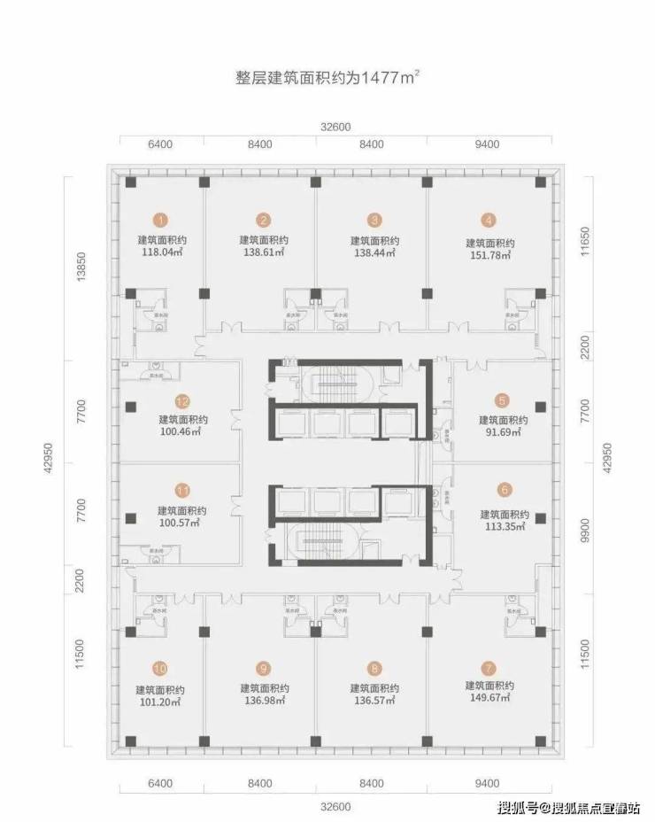 标准层面积:约1480㎡
