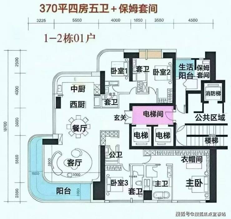 E栋302㎡户型为3梯2户,打造4房4卫+家政套间,客餐厅约8米进深、7米开间;B栋370㎡户型为5梯2户,打造4房5卫+家政套间,客餐厅约9.2米进深、7米开间。项目采用框架结构,户内墙体可自由改动,空间灵活可变。