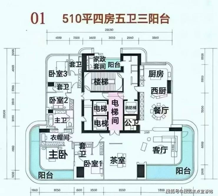 分布在A栋,3梯1户,层高3.6米,整层一户。总价预计过亿。