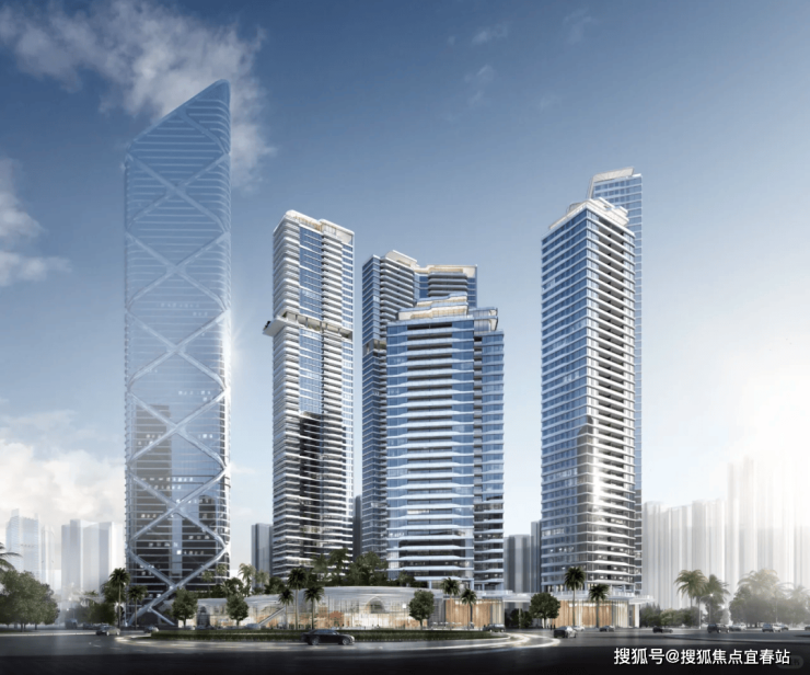 外立面:采用现代极简风格 + 大面积玻璃幕墙 + 高端石材,线条利落,勾勒南站天际线,高端大气,辨识度拉满;