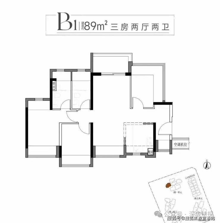 B1、B2户型为南北通透设计,给深圳的3房产品上做了创新带头作用