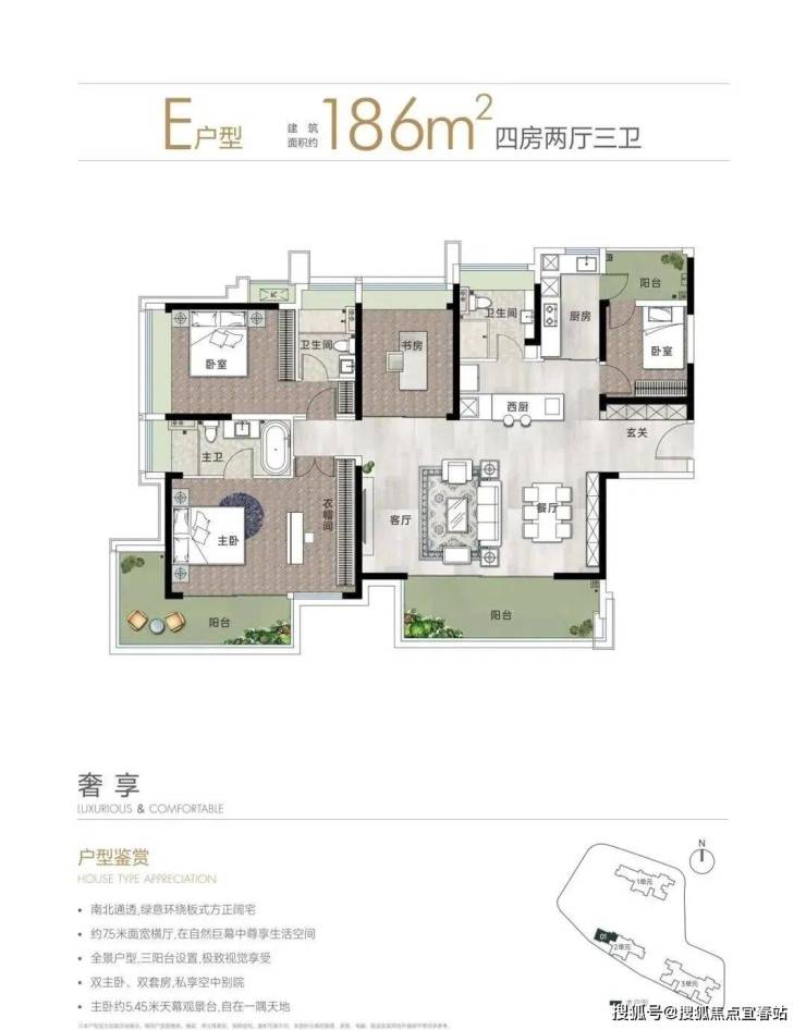可售商品住宅297户将在本批次全部推出,面积段包含建面约90-110-111-126-155-186㎡2-4房。