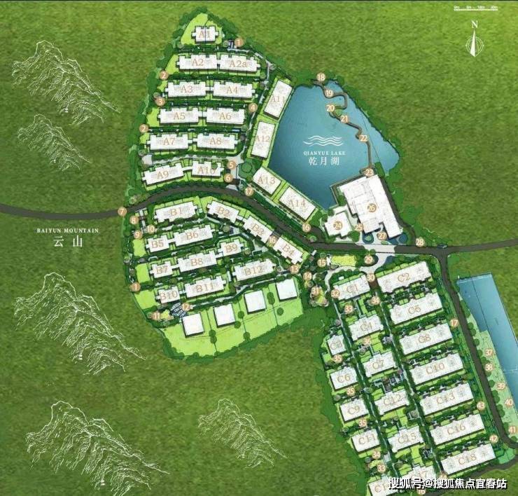 分为ABC三个住宅组团分期开发,其中A区为41套联排别墅和15套临湖别墅,B区为37套联排别墅,C区以叠墅为主少量平墅产品,共规划269户。