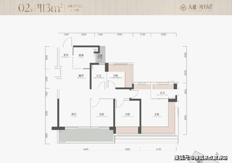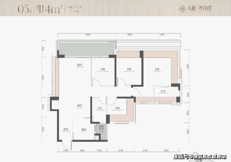 建面约114㎡四房户型是113㎡户型的镜像版,格局一模一样。