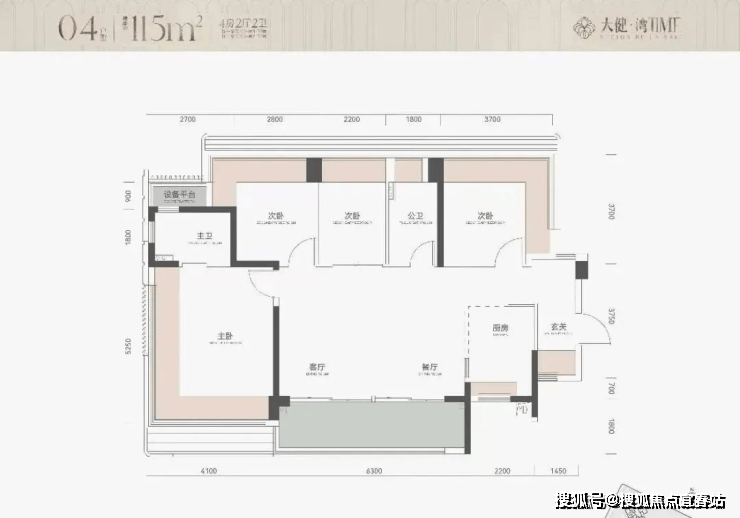 建面约115㎡四房与139㎡五房户型,都是横厅设计,户型基本一致,区别在于139㎡多了一个房间。