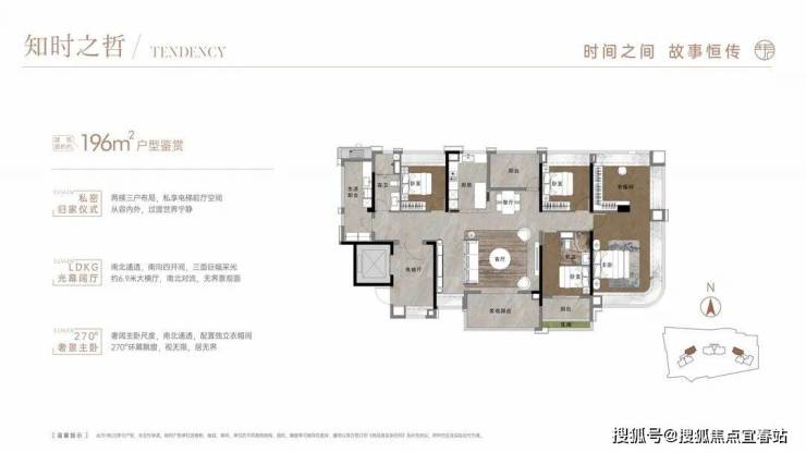 196平户型,做了双主套,客厅、卧室、阳台等开间尺度也比同面积段产品更大。
