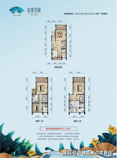 235-241平米,赠送57-88平米负一层,花园面积80-350平米。总价398-721万;