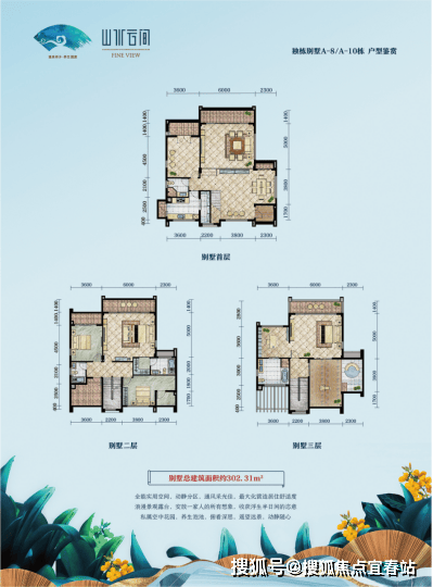 262-309平米,赠送80-150平米负一层,花园面积120-400平。总价740-1014万;