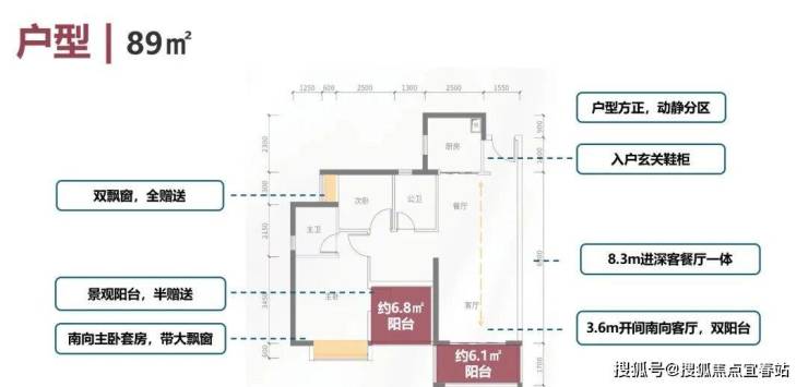 建面约89㎡的户型可以说是优质户型,客厅开间尺度和卧室尺度上做到了均衡,客厅开间约3.6米,主卧开间约3.3米,远超市面上同等面积的户型尺度。完全可以媲美一些超高层100㎡以上的户型尺度,进门看的第一感觉就是采光非常通透,视野开阔,看大雁山和石岩湖,格局也很方正。