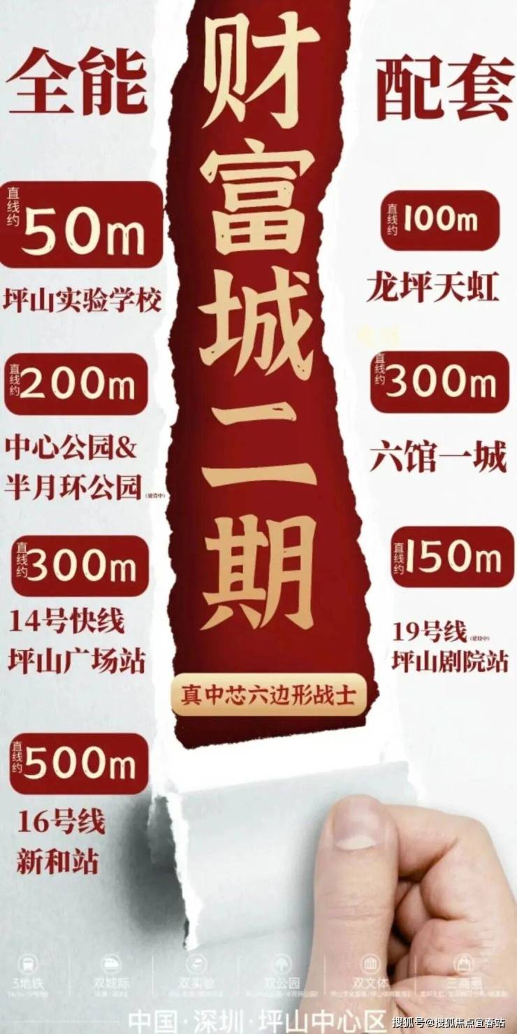 财富城2期所在的区位是整个坪山最核心的地段,汇聚了高铁+14/16号线双地铁+坪山实验学校+坪山中心公园+坪山天虹商场+坪山区政府+坪山体育中心+坪山图书馆,文艺馆等等,所有的市政配套基本都集中在这里,并且财富城2期也是该核心区域内唯一在售的新盘。