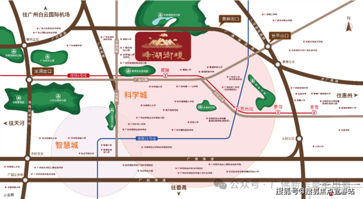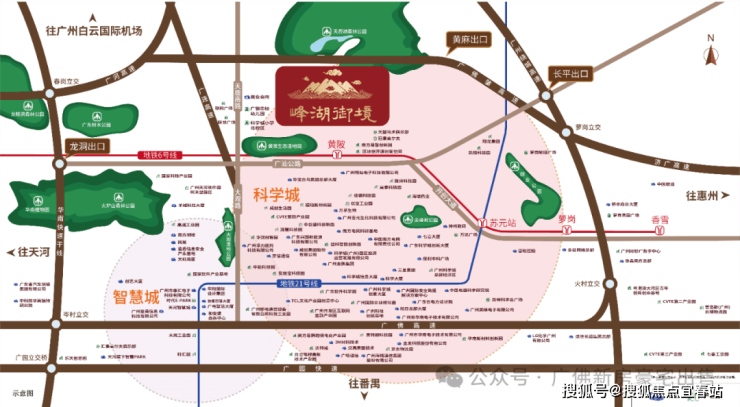 城市干线:多条主干线汇聚,广汕路、大观路、开创大道便达广州各主要商圈。