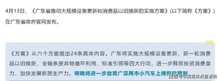 广东省最新方案表示,将进一步加快发展新质生产力,明确放宽广深两市小汽车上牌指标限制。