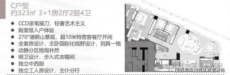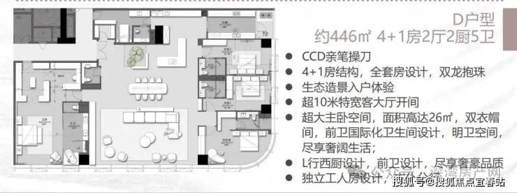 荟萃CCD、柏朗国际两大设计团队联袂匠造,以国际化视野,精研侨城湾芯云端新作,仅28席,位于建筑23-29层,全高区景观视野,建面约323-446㎡,纯粹大户云端居所。4款室内设计风格独特,尺度阔绰,兼顾细致实用,畅享舒适空间。