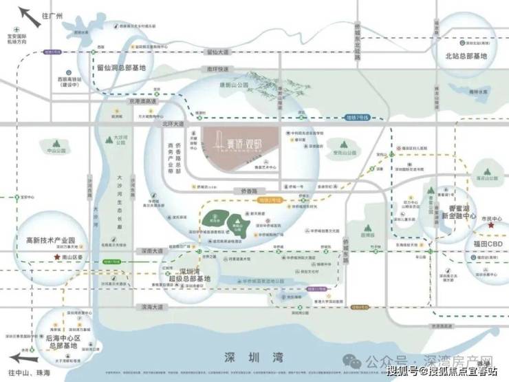 快捷交通路网:北环大道/南坪快速/侨香路/京港澳高速,20-30分钟到福田CBD、深圳北站、皇岗/福田/深圳湾三大口岸、宝安机场等,城芯而居,超享生活。
