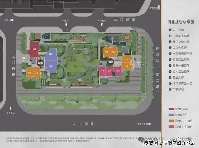 一共322套住宅,其中开发商自持71套,可售251套,户型50-89-117㎡现楼,产权年限70年。A座2梯5户,B座2梯7户。
