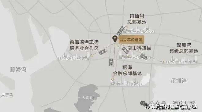 项目最大的一个优势,位于南山几何中心,到南山几个总部基地都很近。往北到西丽留仙洞总部基地,往南紧靠南山中心区,往东到科技园,往西南到前海。
