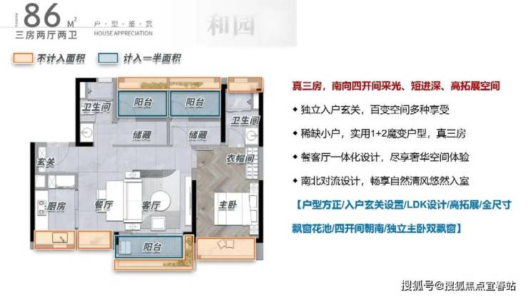 86方,开间朝南独立玄关入户+可灵活调节空间提高实用率形成灵活收纳空间,达成精细化收纳模式实用率超95%,带衣帽间的主卧套间+270°全景阳台一房之内纵览全景,南北对流对流的设计,采光通风不忧愁。