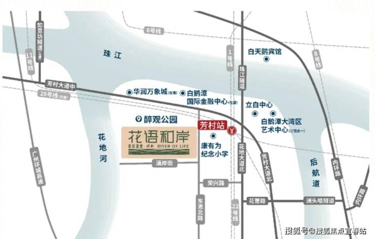 2主干道/2高速/4隧道:花地大道及芳村大道交汇,3公里内有珠江隧道/洲头咀隧道/如意坊隧道(建设中)/东沙隧道(建设中),接驳内环及环城,真正环城轨道交通体系,珠江商圈半小时交通黄金席位。