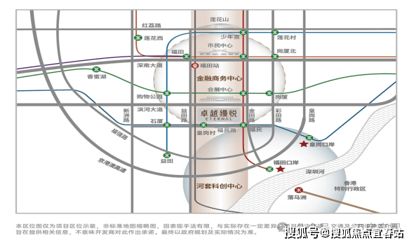 同时还拥有福田口岸、皇岗口岸双口岸的外部交通环境,其中新皇岗口岸作为大湾区里的“超级枢纽”,汇聚了1座综合交通枢纽、皇岗与福田双口岸及10余条轨道交通线路,速联港澳、链动全球;CBD商圈日均去重客流量超过200万人次,密度居深圳全市第一
