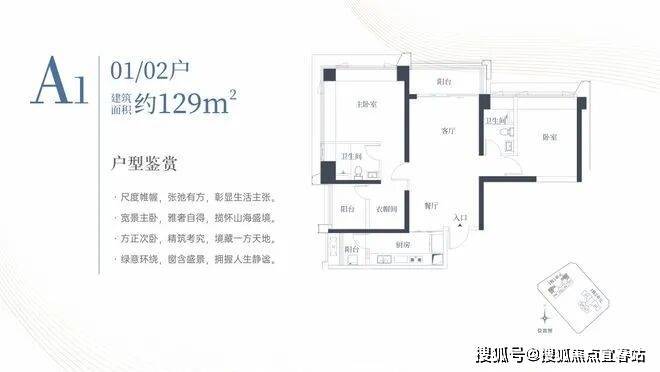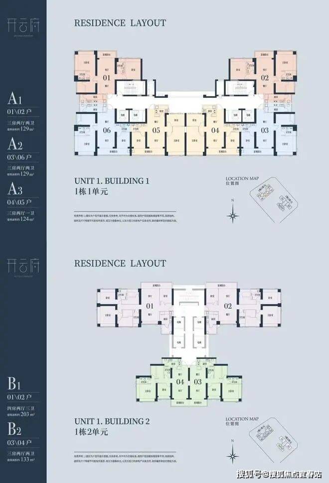 1栋一单元A1、A2户型:面积约为129㎡