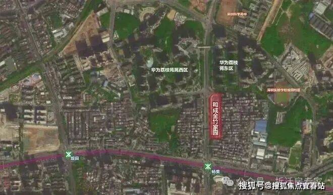 和成金竹家园位于 华为职工公寓“华为荔枝苑”的南边,距离5号线杨美站约350米,距离深圳实验学校坂田校区约500米!