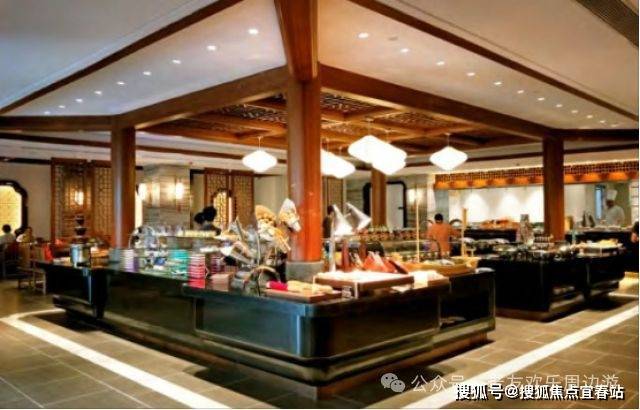 餐厅内外环境典雅优美,每席座位均可领略不同角度的风景。既可以在中式韵味、典雅华贵的室内用餐也可以体验阳光、亲水的户外浪漫。餐厅以西餐、自助餐菜式为主,同时注重养生菜式开发
