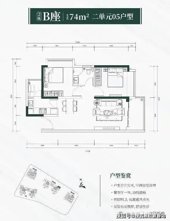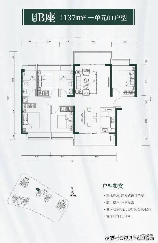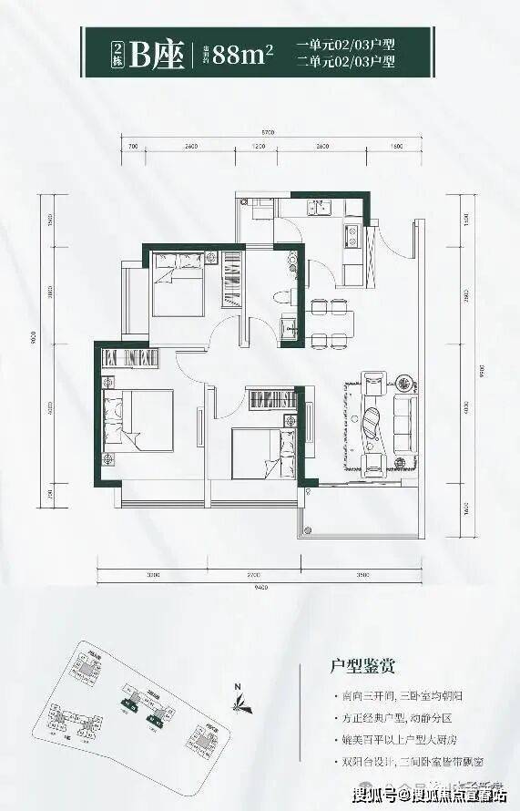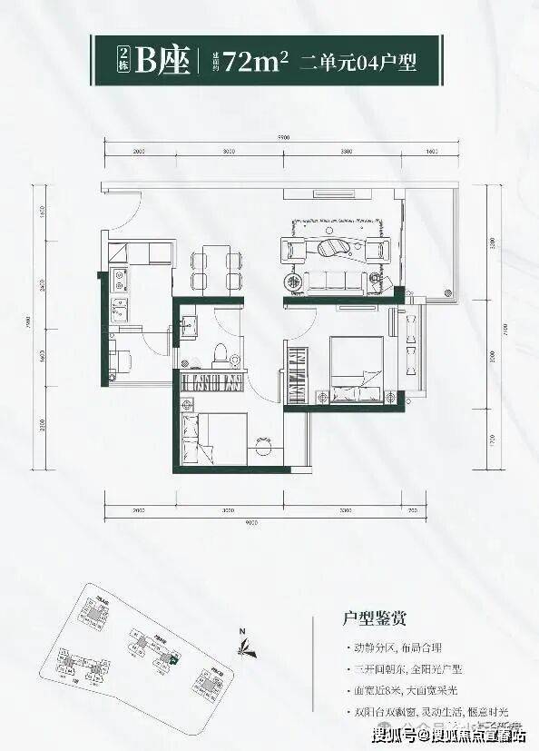项目主推72-88-138㎡2-4房,三个面积段五种户型。
