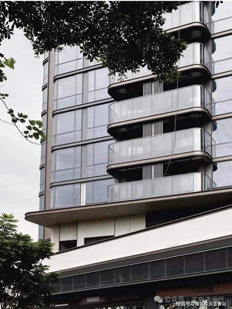 外立面使用涂料、石材、玻璃、铝板、金属线条等高端建筑材料,是光明外立面率先使用”弧形元素设计“景观阳台的住宅项目之一。
