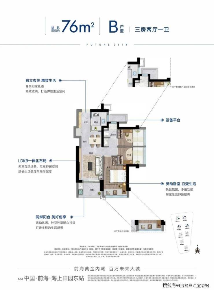 76㎡3房1卫:总价264-278万/套,单价3.4-3.6万/㎡;