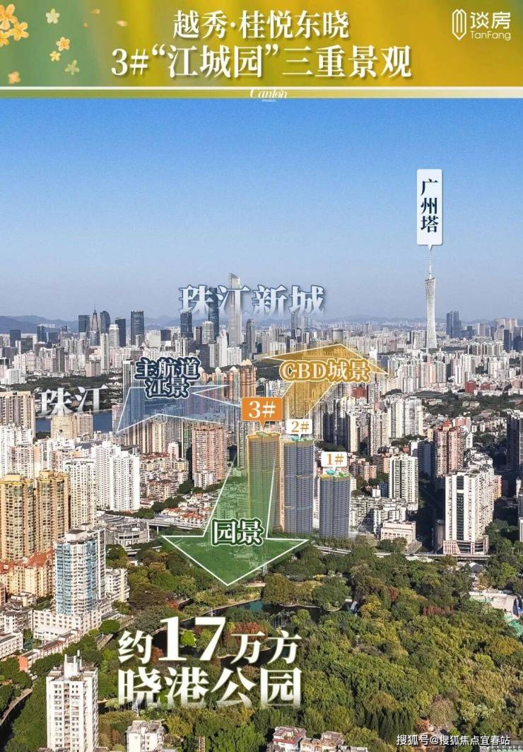 西南向直面约17万方晓港公园,推窗见千年云桂桥与碧波湖景东向俯瞰珠江小蛮腰,城市天际线与人文底蕴尽收眼底