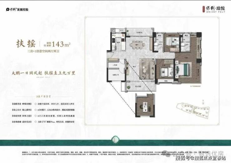 扶摇【建筑面积约143㎡】1、进阶版四房,私享“行宫”主卧套房2、整厅空间达50㎡3、南北对流双阳台 阳台率达20%4、四开间全南向5、超33㎡对流主套间 超5㎡衣帽间