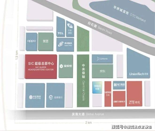 深圳湾超级总部基地(简称深超总)位于深圳市域核心地段,与香港隔海相望,是招商银行、中国电子、万科集团等世界500强企业总部。总占地面积117公顷,建筑面积约520万㎡,规划就业人口约30万,由深圳地铁集团和万科集团联合开发。