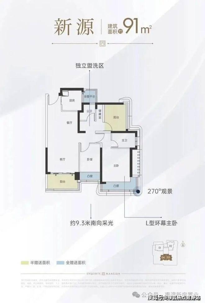 建面约91-123㎡高定新规住宅,使用率94%!约3.1米层高,扩容生活尺度。户户坐北朝南,三面采光,打造270°环幕主卧。131户配置132个车位,3梯4户。