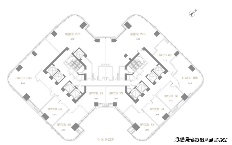 方胜纹双核心筒的设计使得整栋建筑更加高效和私密,并实现了双专梯电梯入户,为塔尖人群高效的工作和私密的生活而服务。转角处曲线设计,拓宽了整个建筑界面,使得建筑拥有270°转角无柱开放式观景视野。是塔尖人群拥揽深港的极佳观景台,足以盛放您帷幄城市的雄心。