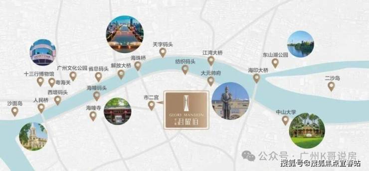 从项目自驾出发,行驶在江南大道北,穿过海珠桥/解放桥,就能抵达越秀区,经过海珠广场、北京路步行街、人民公园、中山纪念堂,直达广东省政府、广州市政府。