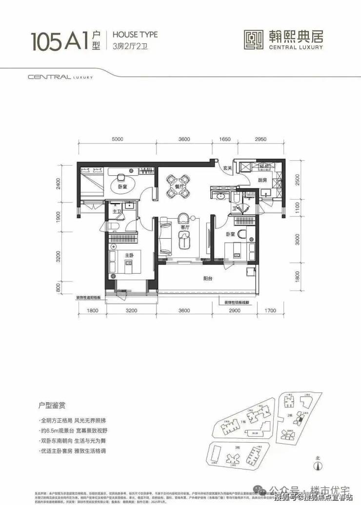 户型面积格局折后总价折后单价得房率朝向105㎡3房2卫