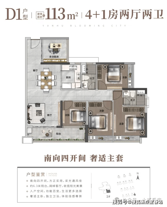 高性价比的全龄段人居N+1户型,户型涵盖约70-140㎡三-六房。