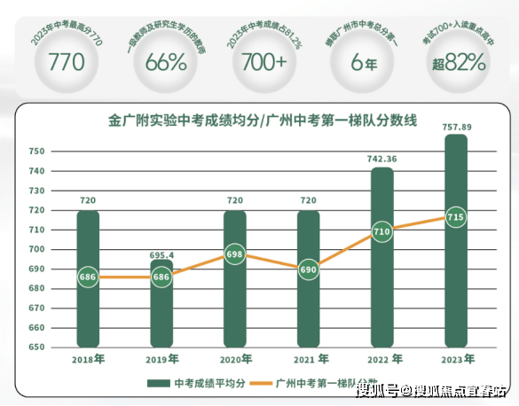 白云广附云湖学校师资力量雄厚,办学成绩斐然。近年来,白云广附系列学校中考成绩稳居广州市前列,其中核心校金广附更是屡创佳绩,在实现中考成绩五连冠后,2023 年斩获广州市中考最高分 770 分。同年 5 月,广州市招考办公布的中考自主招生初审名单中,该校入围人数位列全市首位