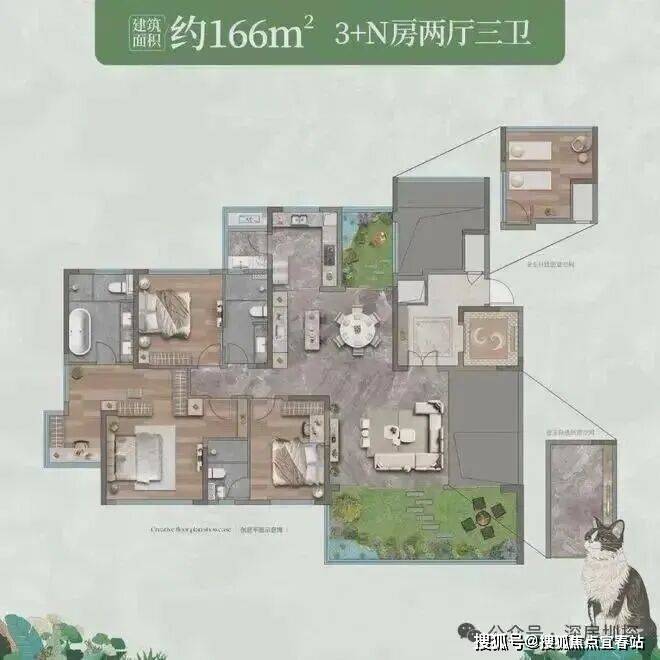 其在移步换景的视觉盛宴中,贴心配置了千米有氧跑道、沙滩派对泳池、森林儿童游乐区、爱宠活力公园、茶艺馆及多功能拓展空间等,不仅满足全龄业主的户外休闲需求,甚至连萌宠都周到照顾到。